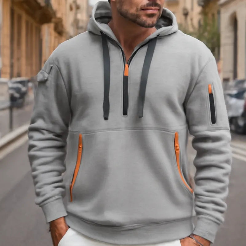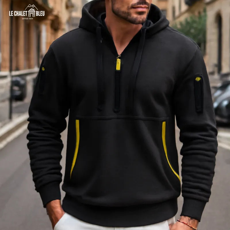 Avec ses poches zippées contrastées, son col à demi-zip et sa coupe moderne, Thomas™ redéfinit le sweat à capuche pour l’automne/hiver. Confectionné en coton doux, il vous enveloppe de chaleur tout en laissant respirer la peau. Idéal pour affronter les journées fraîches. Le sweat parfait pour une allure décontractée mais soignée.